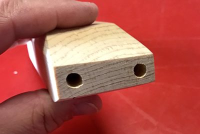 - Place the block in a vice, using a drill and either a 1 1/8″ paddle bit or forstner but (available at any hardware store) drill the hole for the module deep enough to intersect with the LED lights.