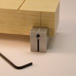 - Install the tool over block and align the location marks on the tool with the marks on the block for the new slots. Snug the set screw to hold the Pro Body Slotter in place with the provided hex wrench.